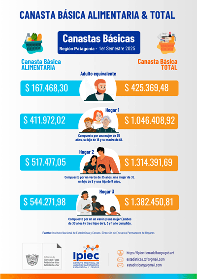 25 septiembre, 2025Infografía Canasta Básica Alimentaria & Total – Región Patagonia – 1º Semestre 2025
