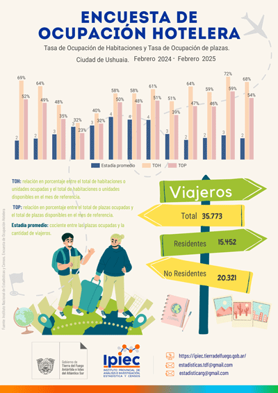 Tasa de Ocupación de Habitantes y Tasa de Ocupación de plazas Ciudad de Ushuaia, Febrero 2025.