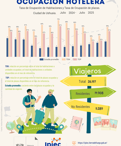 Tasa de Ocupación de Habitantes y Tasa de Ocupación de plazas Ciudad de Ushuaia, Julio 2025.