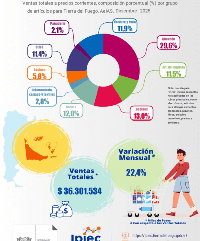 El Instituto Provincial de Análisis e Investigación, Estadística y Censos, dependiente de la Secretaría de Finanzas dentro del Ministerio de Economía, nos presenta la infografía Encuesta de Supermercados. - Diciembre 2025