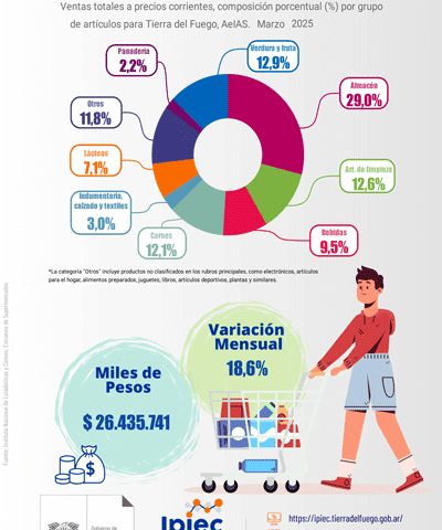 El Instituto Provincial de Análisis e Investigación, Estadística y Censos, dependiente de la Secretaría de Finanzas dentro del Ministerio de Economía, nos presenta la infografía Encuesta de Supermercados. - Marzo 2025