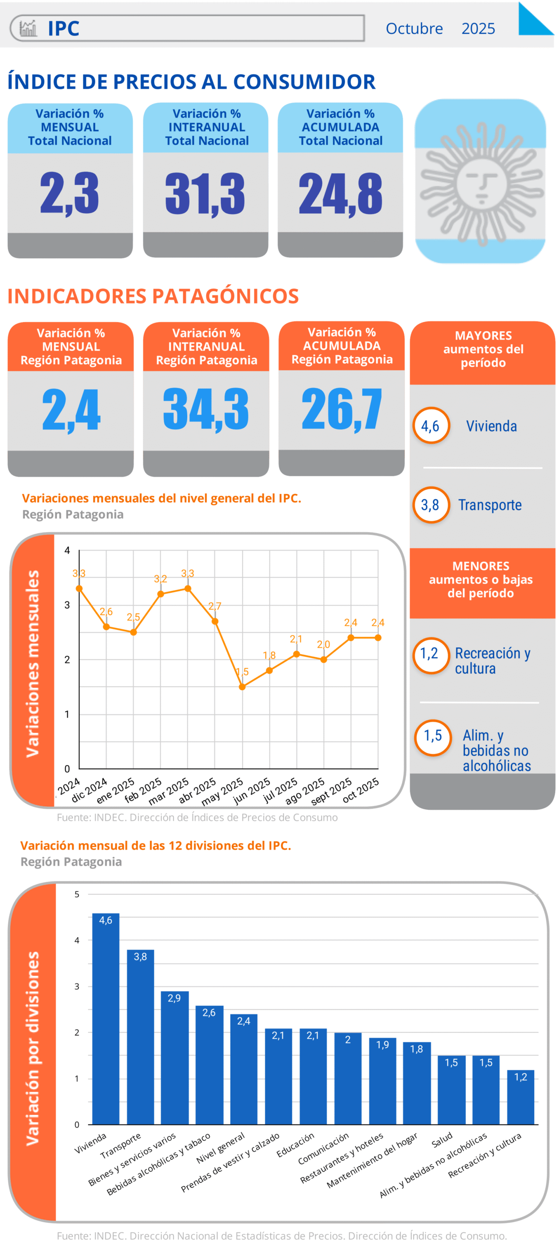 Infografía Índice de Precios al Consumidor – IPC – Región Patagonia – Octubre 2025