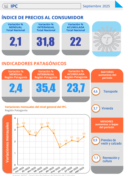 Infografía Índice de Precios al Consumidor – IPC – Región Patagonia – Septiembre 2025
